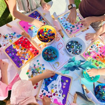House of Colors is based in Burbank and brings fully hosted kids art parties to Los Angeles and surrounding areas. Our team comes to where the party is with all the supplies! We set up a decorated mosaic table, and guide the activity from start to finish so kids feel confident and supported. We keep things fun, safe, and organized, then handle all cleanup at the end - making it an easy, stress-free party for parents and a memorable creative experience for kids!
