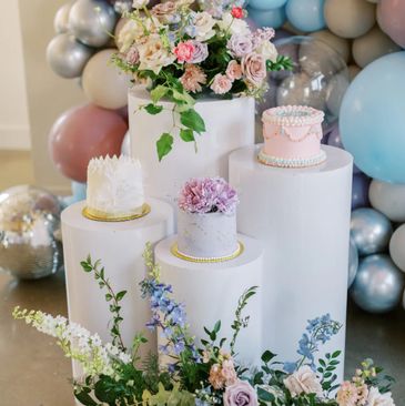 White metal cylinder stands ranging from 20", 22", 24", 30" and 35" tall